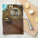 Steampunk Rusty Hintergrund mit türkisfarbenen Lin Geschirrtuch