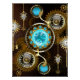 Steampunk Rusty Hintergrund mit türkisfarbenen Lin Poster
