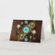 Türkisfarbene Linsen mit antiker Uhr mit Messinggetrieben und goldenen Tasten auf rostigem, braunem Hintergrund. Steampunkstil.