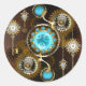 Steampunk Rusty Hintergrund mit türkisfarbenen Lin Runder Aufkleber