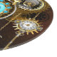 Türkisfarbene Linsen mit antiker Uhr mit Messinggetrieben und goldenen Tasten auf rostigem, braunem Hintergrund. Steampunkstil.