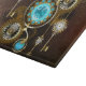 Steampunk Rusty Hintergrund mit türkisfarbenen Lin Schneidebrett