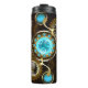Steampunk Rusty Hintergrund mit türkisfarbenen Lin Thermosbecher