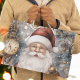 Eine große Geschenktasche für Ihre Lieblingsgeschenke unter Ihrem Baum mit einem Portrait des Weihnachtsmanns in seiner Drahtbrille und bordeauxfarbene Weihnachtsmannmütze umgeben von seinen Werkstattuhren. Der Weihnachtsmann hat auch eine Touch von weihnachtlich blauen und grauen Farbtönen und seine Uhren werden in einem zarten Elfenbein und Beige gemacht. Er hat eine etwas skurrile und steampunkte Drehung. Der Weihnachtsmann erscheint auch auf passendem Papiertaschentuch und Geschenktafeln. Designed by mw1designsart.
