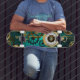 Steampunk-Schmuckschau auf grünem Hintergrund Skateboard