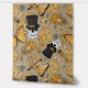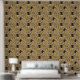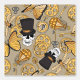 Gemusterte Wallpaper aus Steampunken mit Schädeln mit Oberhüten, Zahnrädern, Zahnrädern, Schmetterlingen, Libellen und Heißluftballons in Braun- und Goldtönen