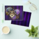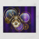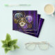 Steampunkspinne aus Gold und Stahl mit antiken Uhren mit vergoldeten Gängen auf lila, gestreiftem, texturiertem Hintergrund mit Linsen und Messinggetrieben. Steampunkstil.