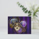 Steampunkspinne aus Gold und Stahl mit antiken Uhren mit vergoldeten Gängen auf lila, gestreiftem, texturiertem Hintergrund mit Linsen und Messinggetrieben. Steampunkstil.