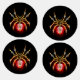 Mechanical, steampunk spider with gold, brass gears and a red glass lamp on a black background. Steampunk style.