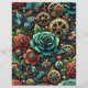 Schöne Steampunk Themed Gears, Schmetterlinge und Rose Gold, aquamarine und burgundische Scrapbook Papier. Hübsches Kunsthandwerkspapier, das Sie für Scrapbooking, Kartenmachen und andere lustige Kunsthandwerke verwenden können!