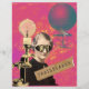 Die Kitschy Collage ist mit einer Vintagen Stuhlbrille aus den 1930er Jahren, einer Foto- und Flugmaschine, einem Waschband mit "trailblazer"-Text auf dem farbenprächtigen magentafarbenen Pop-Hintergrund in Rosa und Gold
