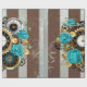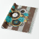 Steampunk-Uhr und türkisfarbene Rose auf Streifen Geschenkpapier