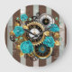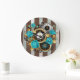 Steampunk-Uhr und türkisfarbene Rose auf Streifen Große Wanduhr