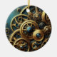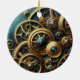 Steampunk-Uhrwerk Gold und Aquamarin Keramik Ornament