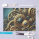 Das elegante Steampunk-Design strahlt vor einem aquamarinen Hintergrund ein und verleiht der modernen Kunst ein lebendiges industrielles Ambiente - perfekt für Kunsthandwerk wie Decopage!