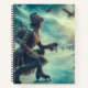 This elegant winter messenger travels along the ice on ice skates in this steampunk Victorian fantasy world towers a tower in this detailed fantasy artwork notebook.