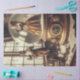 Diese beiden Künstler sind Teil eines fantasievollen Steampunk-Kunstwerks und Teil einer Viktorianischen Schneekugel. Mit dem Sänger in der Welt und dem Gitarristen draußen sind beide bereit, in dieser skurrilen Welt aufzutreten. Dieses Papiertaschentuch eignet sich perfekt für Kunsthandwerk wie Entcoupage.