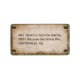 Ein altes Hochzeitstil-Adressetikett, mit einem Viktorianischen Steampunk-Look, bestehend aus einem Rahmen aus grünem Blumentapeten, vergoldeten Metallknöpfen an jeder Ecke und Vintagem braunem Papier.