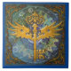 Goldgeflügelte Schlüssel mit dem Hintergrund alter Sternkarten, einem rostigen Zahnradrad und verzierten Vintagen Viktorianischen Rollwerkecken