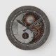 Diese einzigartige Steampunk Yin Yang Illustration zeigt alte Rostgänge und Festmetallnieten. Eine Seite des Yin-Yangs scheint das Innere einer komplexen Maschine zu sein, während die andere Seite das Aussehen eines soliden Stahls hat. Metallische Texturen und rostende Farben verleihen diesem Symbol ein ausgeglichenes industrielles Ambiente. Dieses einzigartige Design ist eine schöne und stilvolle Interpretation dieses alten Symbols.