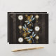 Antike Tasten mit Gold- und Messinggetrieben, mit mechanischen Steampunkdrachenfliegen auf braunem, gestreiften Hintergrund dekoriert.
