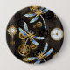 Steampunkdrachenfliegen auf braunem, gestreiften H Button