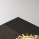 Antike Tasten mit Gold- und Messinggetrieben, mit mechanischen Steampunkdrachenfliegen auf braunem, gestreiften Hintergrund dekoriert.