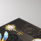 Antike Tasten mit Gold- und Messinggetrieben, mit mechanischen Steampunkdrachenfliegen auf braunem, gestreiften Hintergrund dekoriert.