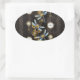 Steampunkdrachenfliegen auf braunem, gestreiften H Ovaler Aufkleber