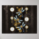 Steampunkdrachenfliegen auf braunem, gestreiften H Poster