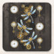 Steampunkdrachenfliegen auf braunem, gestreiften H Rechteckiger Pappuntersetzer