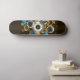 Zusammensetzung der runden Steampunkuhr mit schwarzem römischen Zifferblatt, mit Gold- und Messinggetrieben, blauen Morpho-Schmetterlingen und beschädigten Linsen auf braunem, gestreiften Hintergrund. Steampunkstil.