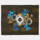 Steampunkgeere und blaue Schmetterlinge Fleecedecke