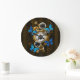 Steampunkgeere und blaue Schmetterlinge Große Wanduhr