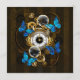 Steampunkgeere und blaue Schmetterlinge Menükarte