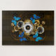 Steampunkgeere und blaue Schmetterlinge Puzzle