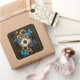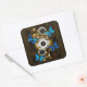 Steampunkgeere und blaue Schmetterlinge Quadratischer Aufkleber