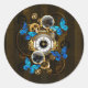 Steampunkgeere und blaue Schmetterlinge Runder Aufkleber