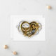 Mechanisches, volumetrisches, steampunktes Herz mit Druckmesser, Stahl- und Goldgetrieben auf weißem Hintergrund. Steampunkstil.