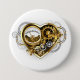 Mechanisches, volumetrisches, steampunktes Herz mit Druckmesser, Stahl- und Goldgetrieben auf weißem Hintergrund. Steampunkstil.