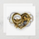 Mechanisches, volumetrisches, steampunktes Herz mit Druckmesser, Stahl- und Goldgetrieben auf weißem Hintergrund. Steampunkstil.