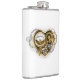 Mechanisches, volumetrisches, steampunktes Herz mit Druckmesser, Stahl- und Goldgetrieben auf weißem Hintergrund. Steampunkstil.