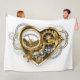 Mechanisches, volumetrisches, steampunktes Herz mit Druckmesser, Stahl- und Goldgetrieben auf weißem Hintergrund. Steampunkstil.