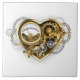 Mechanisches, volumetrisches, steampunktes Herz mit Druckmesser, Stahl- und Goldgetrieben auf weißem Hintergrund. Steampunkstil.