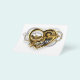 Mechanisches, volumetrisches, steampunktes Herz mit Druckmesser, Stahl- und Goldgetrieben auf weißem Hintergrund. Steampunkstil.