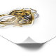 Mechanisches, volumetrisches, steampunktes Herz mit Druckmesser, Stahl- und Goldgetrieben auf weißem Hintergrund. Steampunkstil.