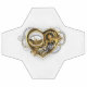 Mechanisches, volumetrisches, steampunktes Herz mit Druckmesser, Stahl- und Goldgetrieben auf weißem Hintergrund. Steampunkstil.