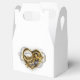 Mechanisches, volumetrisches, steampunktes Herz mit Druckmesser, Stahl- und Goldgetrieben auf weißem Hintergrund. Steampunkstil.