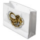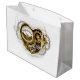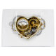 Mechanisches, volumetrisches, steampunktes Herz mit Druckmesser, Stahl- und Goldgetrieben auf weißem Hintergrund. Steampunkstil.
