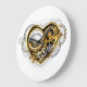 Mechanisches, volumetrisches, steampunktes Herz mit Druckmesser, Stahl- und Goldgetrieben auf weißem Hintergrund. Steampunkstil.